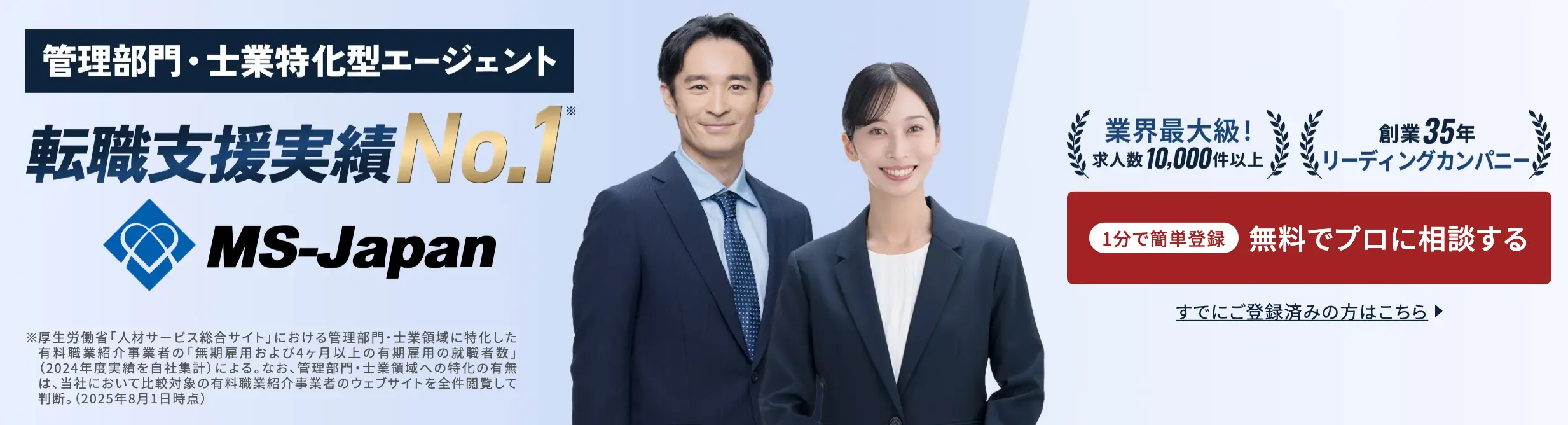 MS-Japanは、管理部門の領域で国内トップクラスのシェアを誇る人材紹介会社です。