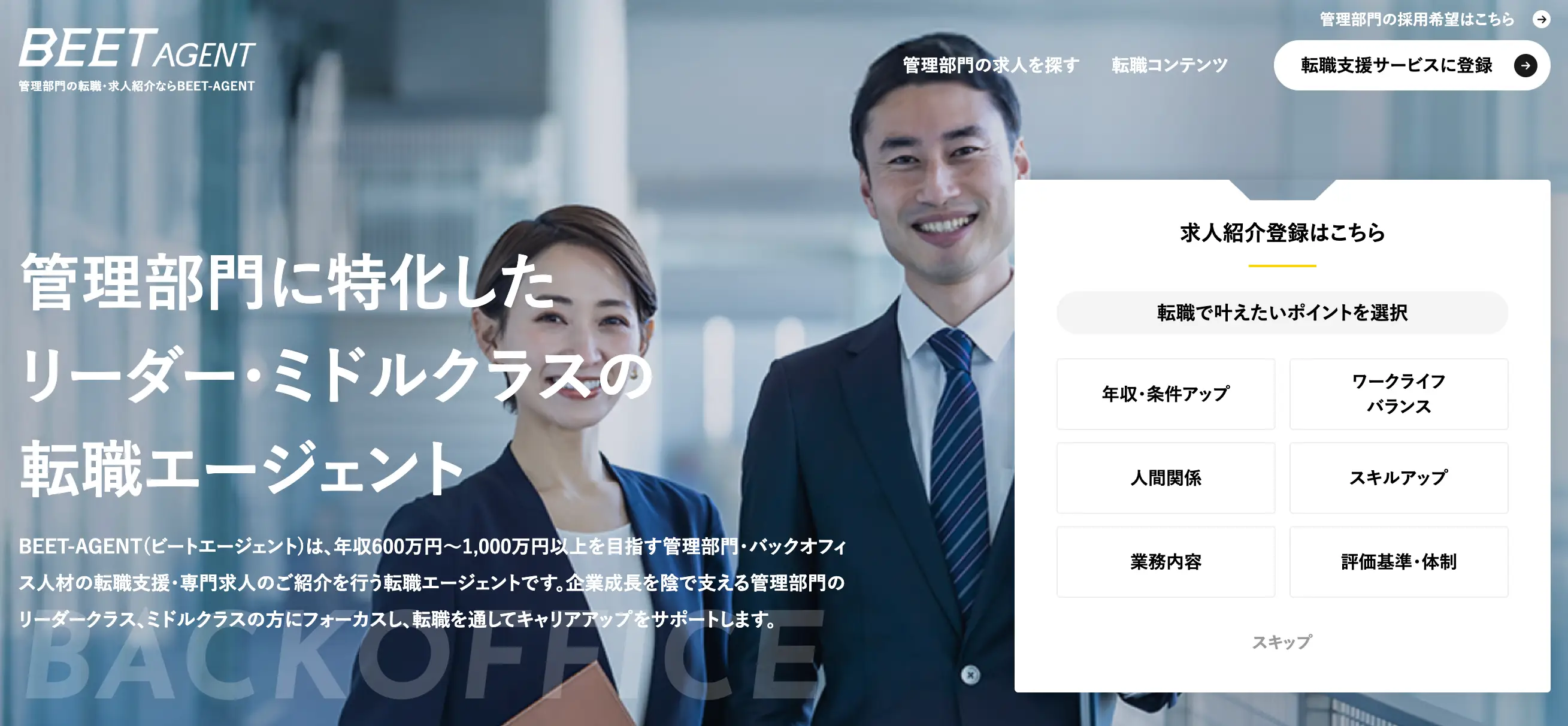 管理部門のキャリアアップや、ハイクラス求人に特化したサービスを展開しています。
