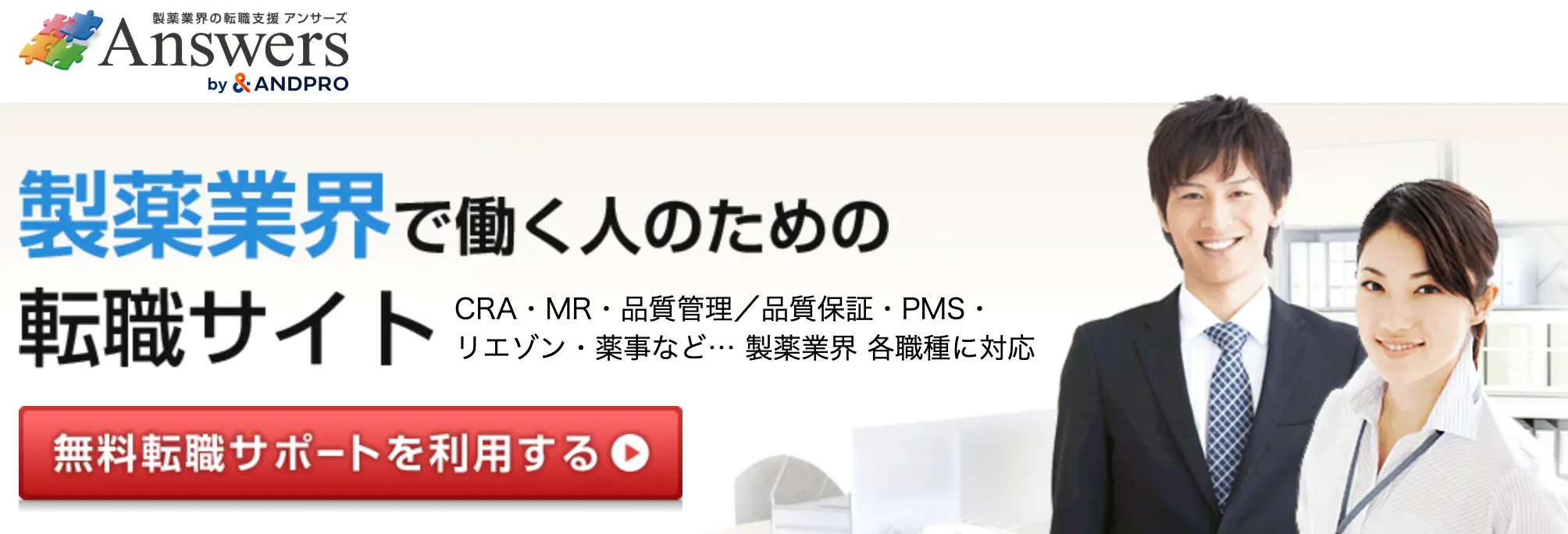 アンサーズ(Answers)は、製薬業界やCRA、MSLといった専門職に特化しています。