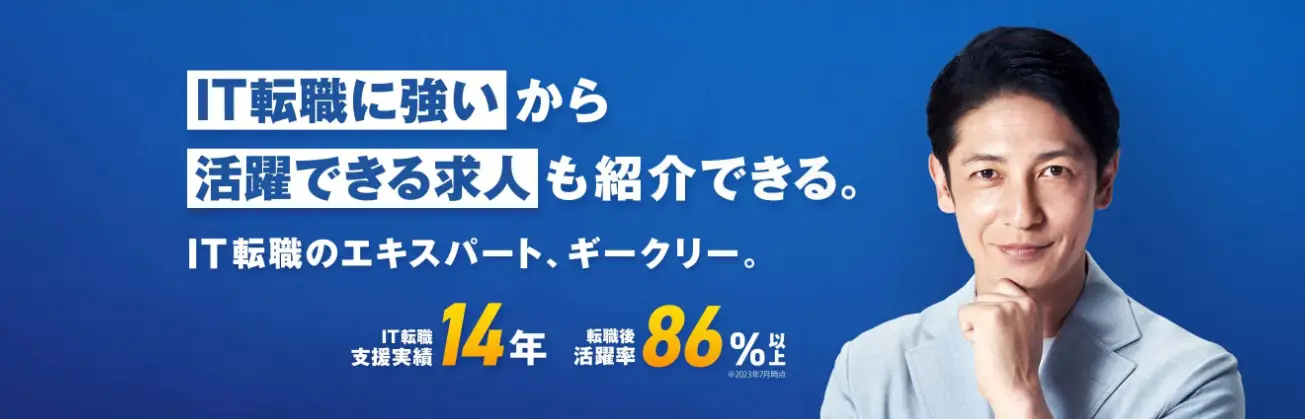 Geeklyは、IT・Web・ゲーム領域に特化した求人紹介・キャリアサポートを行う人材紹介サービスです。
