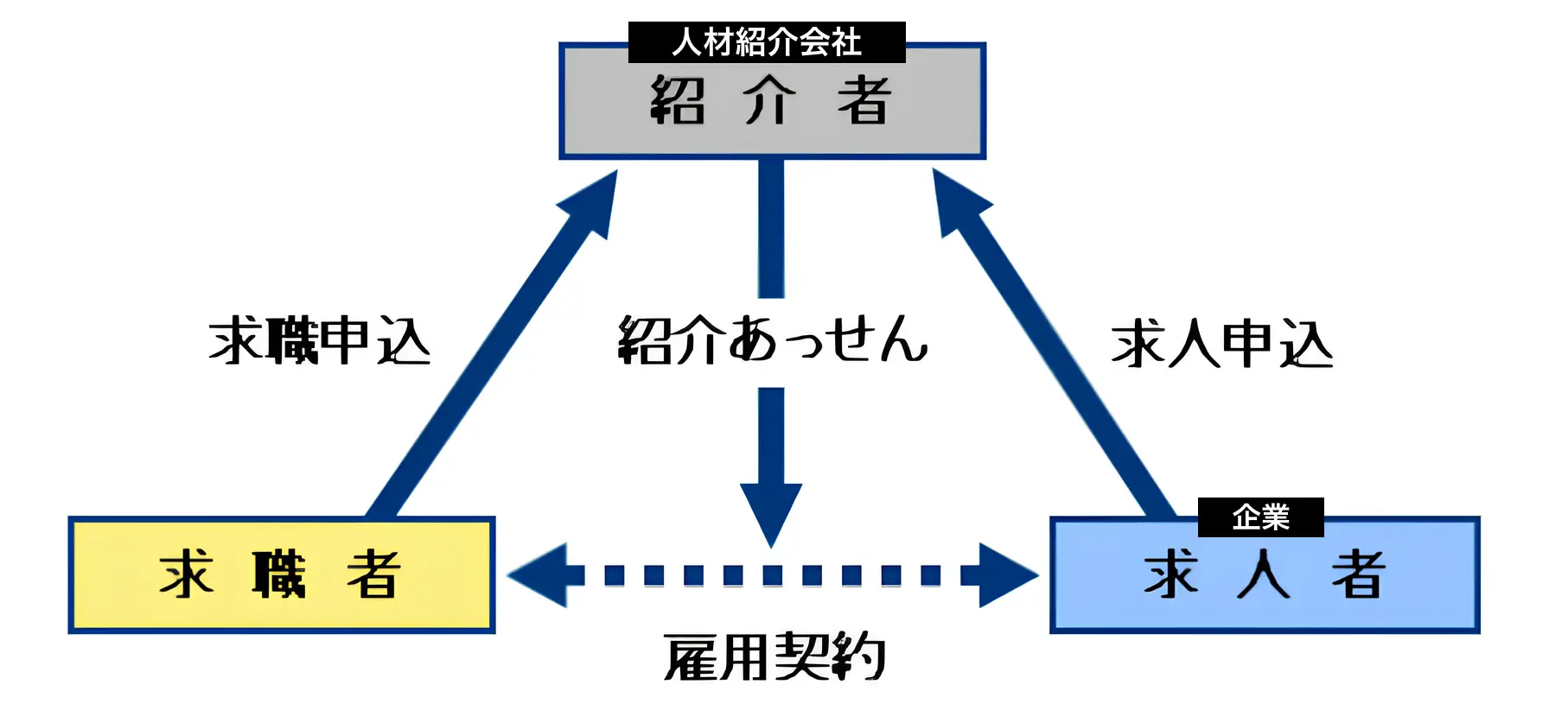 人材紹介会社・企業・求職者の関係性を図で表すと、以下のようになります。