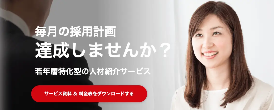 マイナビジョブ20’sは、20代の若手社会人に特化した人材紹介サービスです。若年層の転職支援に精通した専任アドバイザーが、自社にマッチする人材を紹介してもらえます。