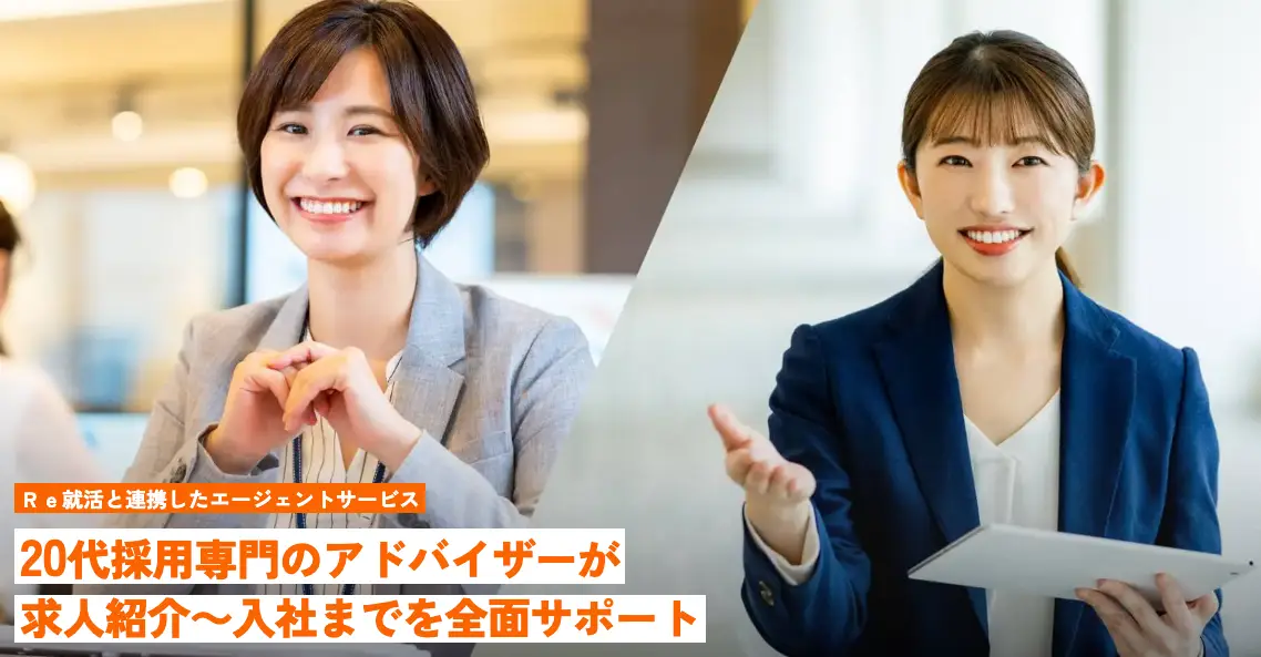 Re就活エージェントは、20代の採用に特化した転職エージェントです。専門のアドバイザーが企業の社風や仕事内容をヒアリングし、求職者との質の高いマッチングを支援します。