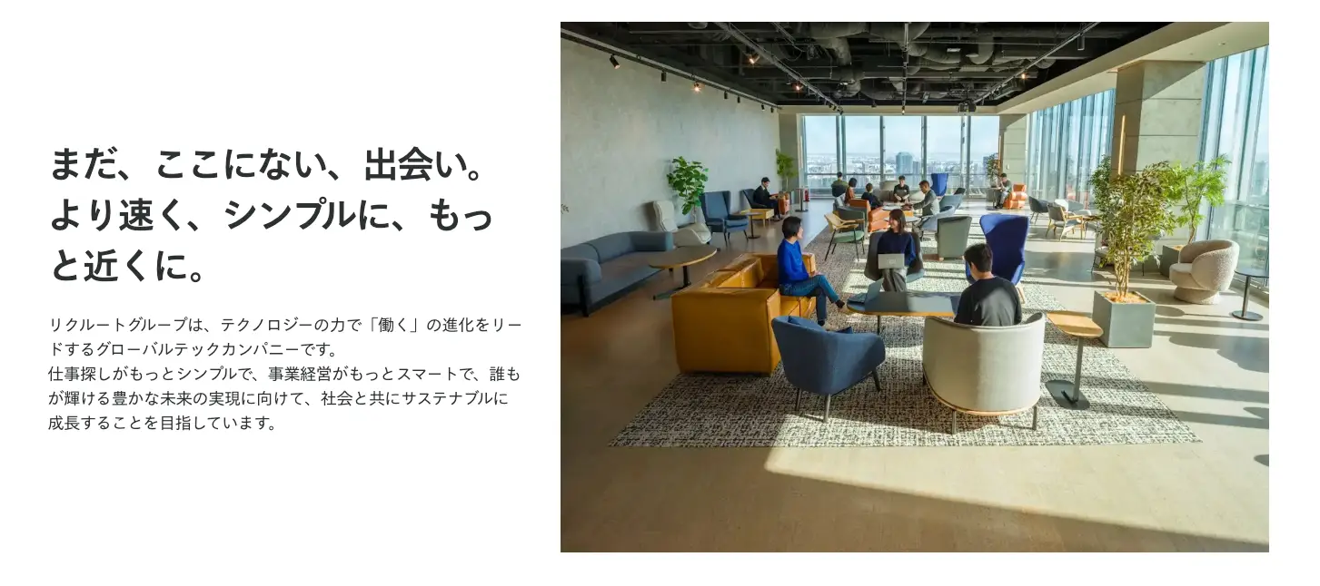 株式会社リクルートホールディングスは、HRテクノロジー事業や人材派遣事業などを展開するグローバルテックカンパニーです。Indeed、リクルート、スタッフサービスといったグループ企業を展開し、世界60以上の国でサービスを提供しています。