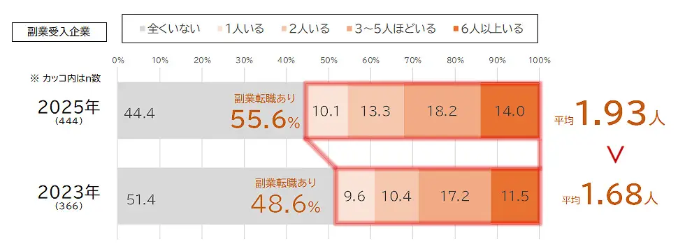 副業転職はすでに少なくない割合で行われており、採用側にとっても珍しくない選択肢になりつつあることがわかります。
